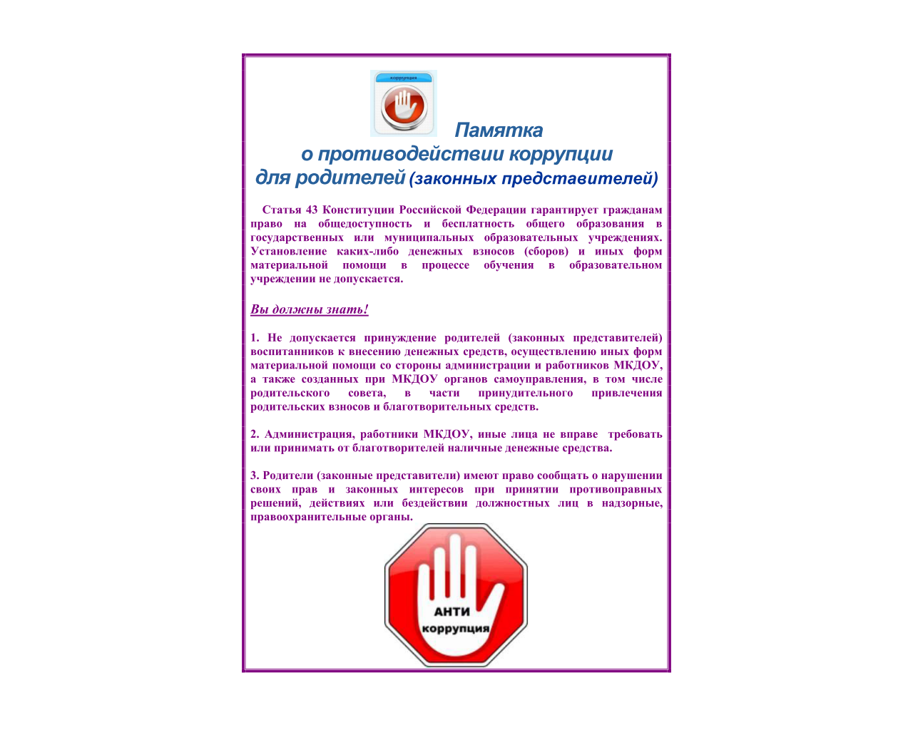 - Антикоррупционный стандарт муниципального общеобразовательного бюджетного учреждения средняя общеобразовательная школа №8 муниципального района Мелеузовский район Республики Башкортостан.