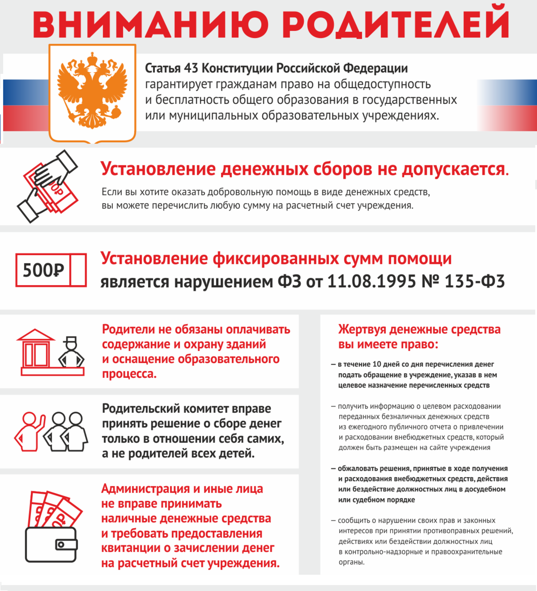 - О запрете незаконного сбора денежных средств с родителей (законных представителей) обучающихся.