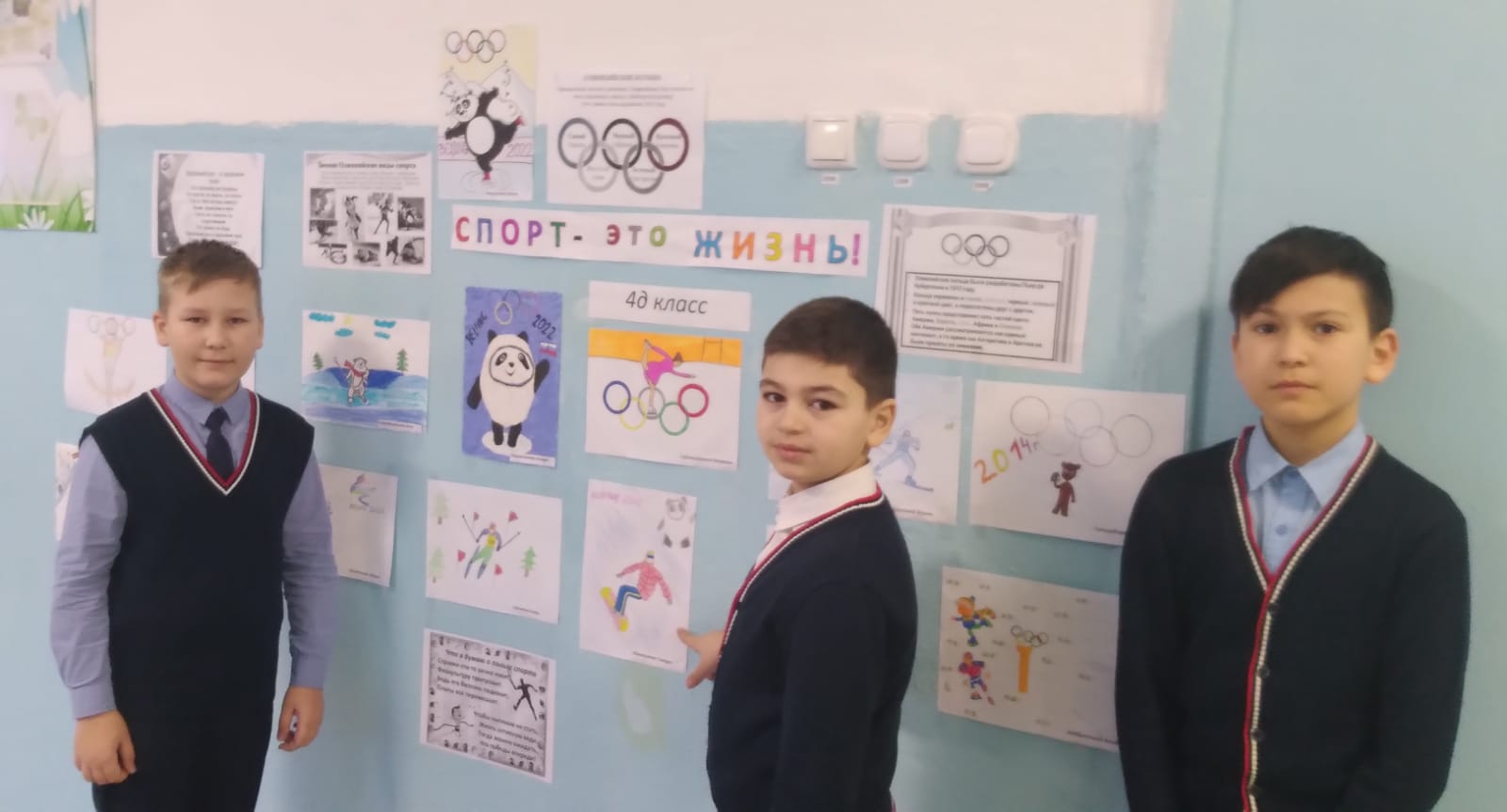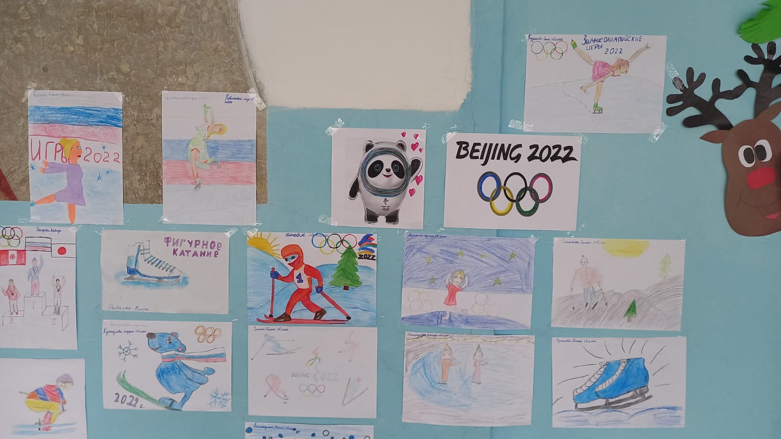 В поддержку наших спортсменов в школе организована выставка рисунков, в каждом из которых отражается увлекательность зимних видов спорта, яркие моменты тренировочного процесса, а также различные факторы, связанные с зимними Олимпийскими играми-2022 в Пекине!