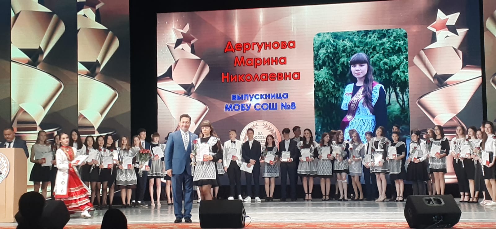 Сегодня в ГДК состоялась церемония вручения медалей "За особые успехи в учении". От нашей школы 7 выпускников получили эту высокую награду: Дергунова Марина; Дрындин Артур; Сарбаев Камиль; Султанов Инзиль; Тукаев Рашит; Филина Ульяна; Циркова Дарья. Поздравляем ребят! Желаем дальнейших успехов в жизни!