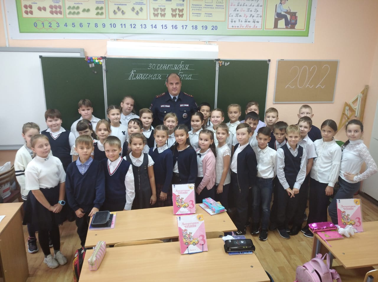 30 октября в 3а классе организована встреча учащихся со старшим инспектором дорожно-патрульной службы ОГИБДД ОМВД России по городу Кумертау капитаном полиции Кудашевым Вадимом Морисовичем.