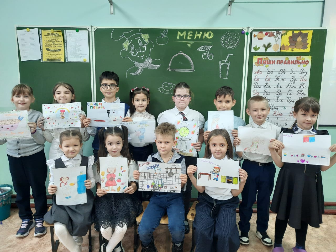 В благодарность за вкусные обеды девочки 5 д класса с учителем технологии Бабичевой Резедой Рафкатовной приготовили поздравительные открытки, обучающиеся 1-4 классов нарисовали рисунки.