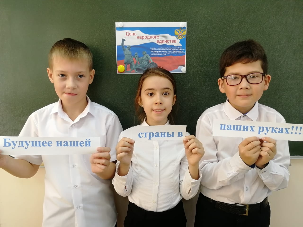 Классные руководители познакомили обучающихся с историей возникновения государственного праздника – Дня народного единства и согласия. Детям рассказали, что праздник единения России установлен в память о событиях 4 ноября 1612 года, когда воины народного ополчения под предводительством Кузьмы Минина и Дмитрия Пожарского штурмом взяли Китай-город, освободив Москву от польских интервентов и продемонстрировав образец героизма и сплочённости всего народа вне зависимости от происхождения, вероисповедания и положения в обществе.