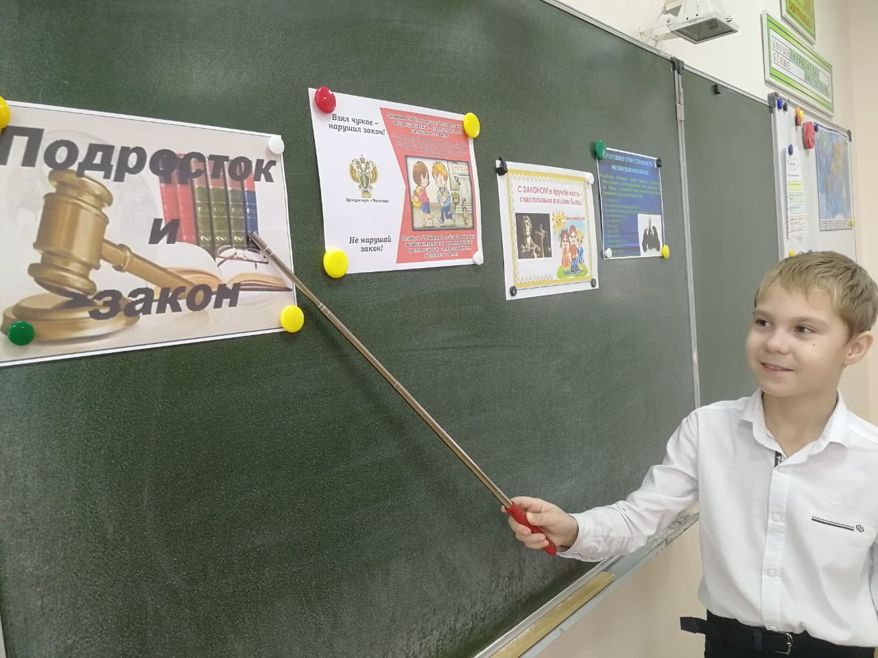 Классными руководителями и активистами Совета учащихся проведены классные часы «Декларация прав ребенка», «Твои обязанности и права», «Закон и подросток», «Ответственность несовершеннолетних за правонарушения» и т.д.