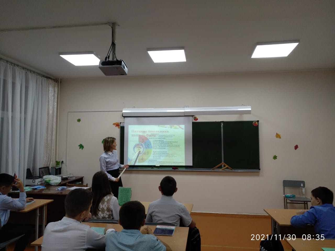 29 ноября в 5а классе был проведен классный час на тему «Идеальное рациональное питание подростков». В ходе классного часа учащимся была предоставлена информация о том, что рациональное питание это сложный процесс поступления, переваривания, всасывания и ассимиляции в организм пищевых веществ, необходимых для покрытия его энергетических затрат, роста и развития организма. По-существу, это соблюдение трех основных принципов питания: баланс энергии, разнообразие пищевых веществ, режим питания. Они научились различать факторы, укрепляющие здоровье, и факторы, негативно на него влияющие, обсуждали и формулировали правила здорового образа жизни. Также на уроке ребята узнали в каких продуктах «живут» витамины. Научились выбирать свежие продукты, поговорили о вреде чипсов, фастфуда, кетчупов, кофе и энергетические напитков.