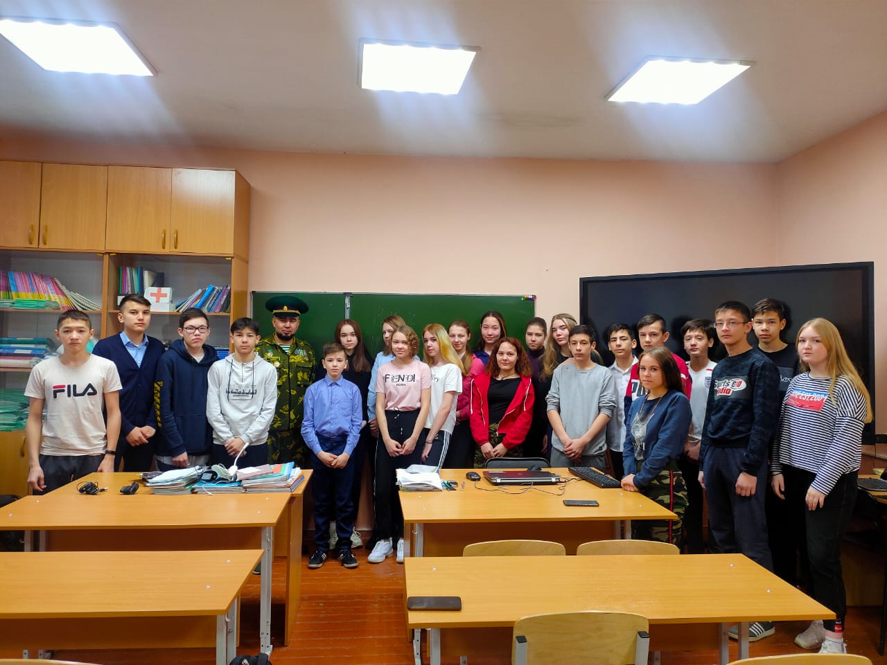 Воины-пограничники (Максимкин Валерий Михайлович, Рахимов Ильмир Хусаинович, Уркин Сергей Владимирович - общественная ветеранская организация «Граница»), прошедшие Афганистан и службу на сгранице, рассказывали о подвигах пограничников в разные этапы нашей истории, об особенностях пограничных войск, о международной обстановке, сложившейся вокруг нашей страны, о понятии «патриотизм», о чувстве долга и ответственности перед своей Родиной.