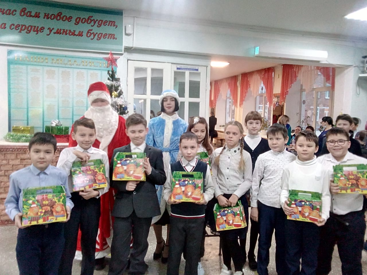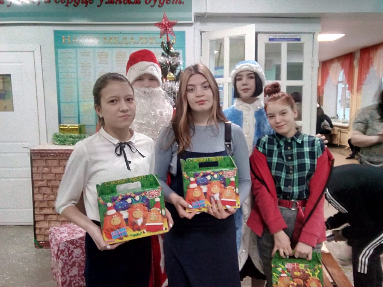 В условиях ограничений, связанных с распространением новой короновирусной инфекции, в этом году подарки в торжественной обстановке вручали в школе.