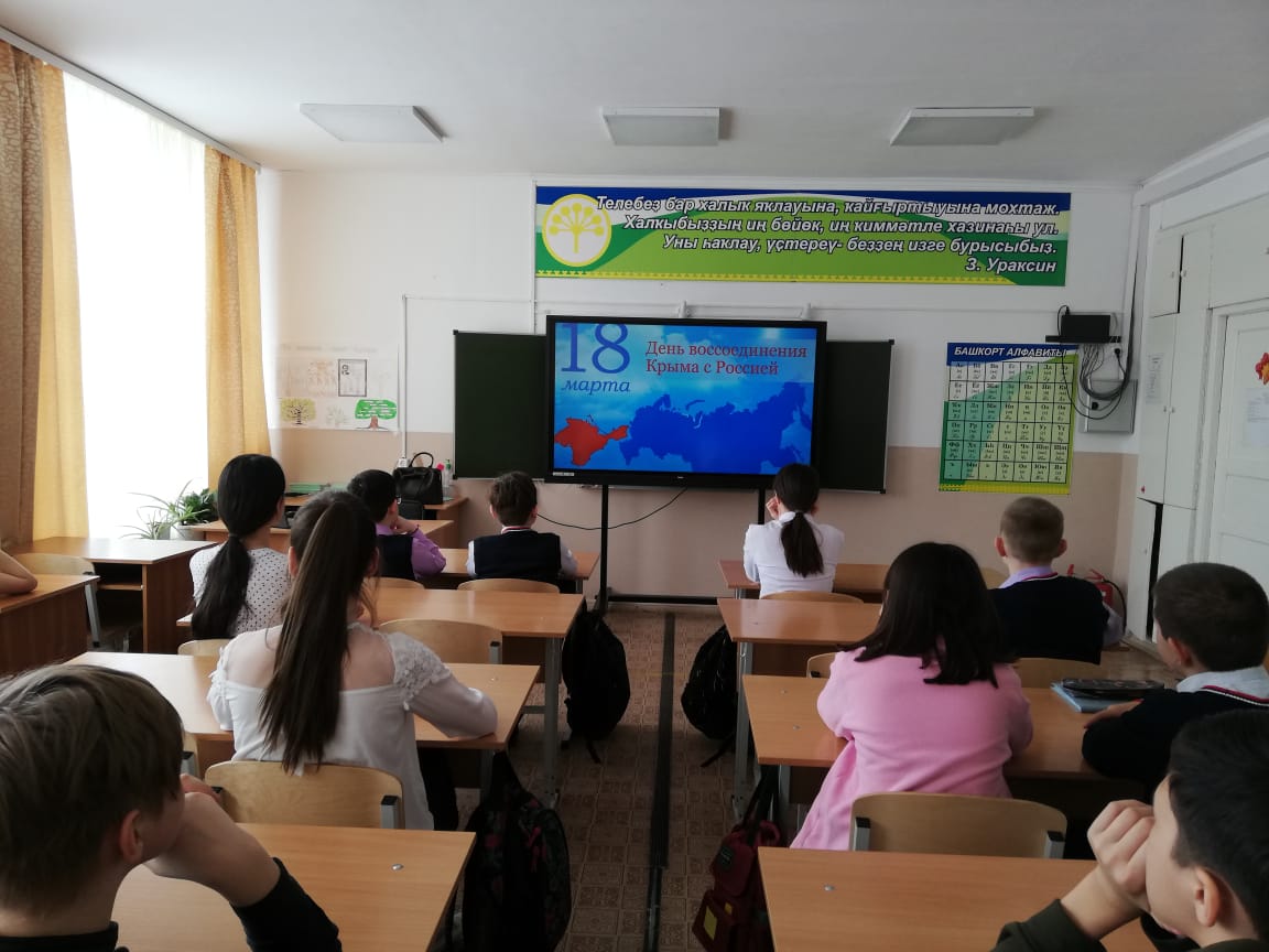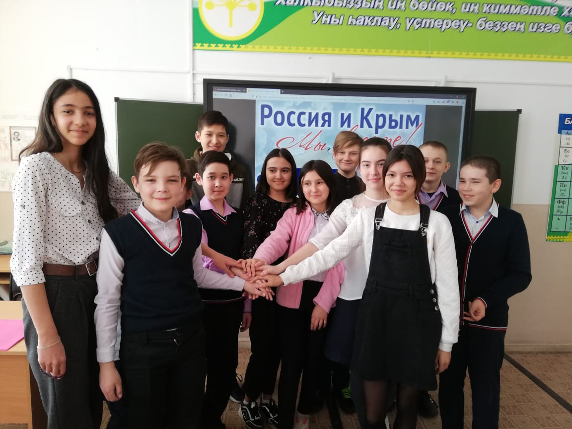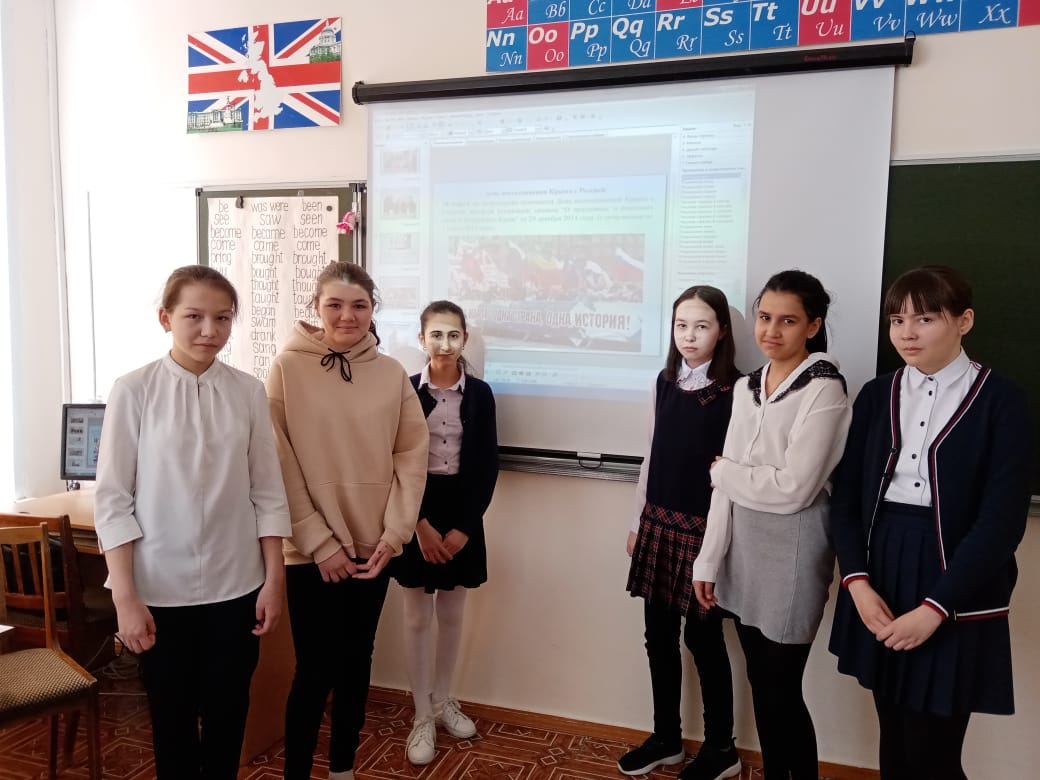 В МОБУ СОШ№ 8 в этот день прошли тематические классные часы, приуроченные к этой дате: «Присоединение Крыма к России», «Россия и Крым – мы вместе!», «День воссоединения Крыма с Россией», «Крым – места воинской славы».