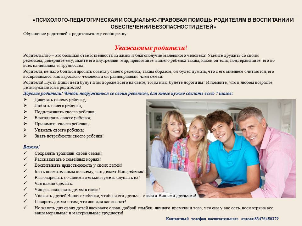 Психолого-педагогическая и социально-правовая помощь родителям в воспитании и обеспечении безопасности детей