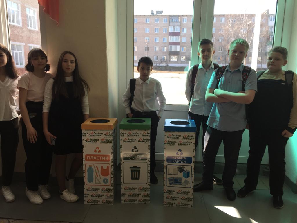 Уже год наша школа участвует в проекте «Зеленая Башкирия», по школе установлены контейнеры для раздельного сбора мусора.