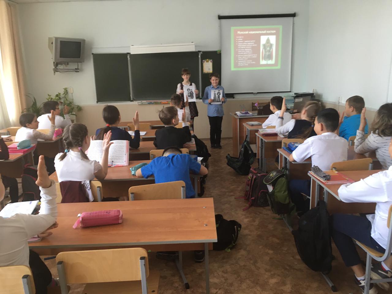 В преддверии этой даты в нашей школе прошли классные часы «День национального костюма», на которых дети знакомились с особенностями национальных костюмов народов, проживающих в Республике Башкортостан.