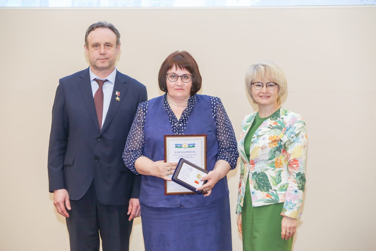 Также Председателем государственного Собрания-Курултая Республики Башкортостан Аиткуловой Э.Р. было вручено благодарственное письмо за большой вклад в развитие инженерно-технического образования детей и молодежи в Республике Башкортостан.