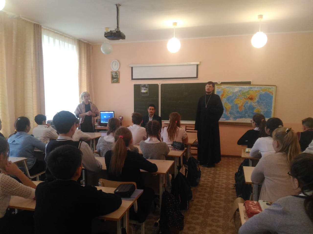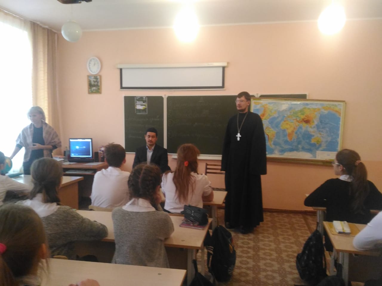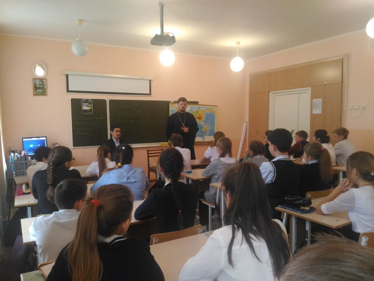 Батюшку и хазрата выслушали с громадным интересом не только обучающиеся, но и педагоги школы. В итоге, беседа прошла живо и интересно. И конечно хочется надеяться, что это принесет свои добрые плоды в жизни ребят.