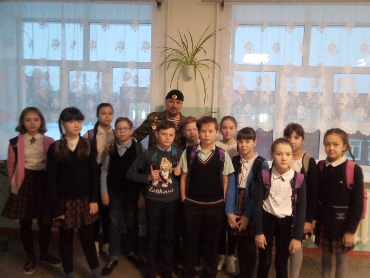 6 февраля для 5-6 классов была организована встреча с членом Всероссийской общественной организацией ветеранов «Боевое Братство» Алексеевым Владимиром Людвиговичем, который рассказал о защитниках нашей страны в разные периоды времени, о военных профессиях и современном российском вооружении. Напомнил ребятам о том, что они не должны забывать и гордиться тем, что они потомки непобедимых российских солдат.