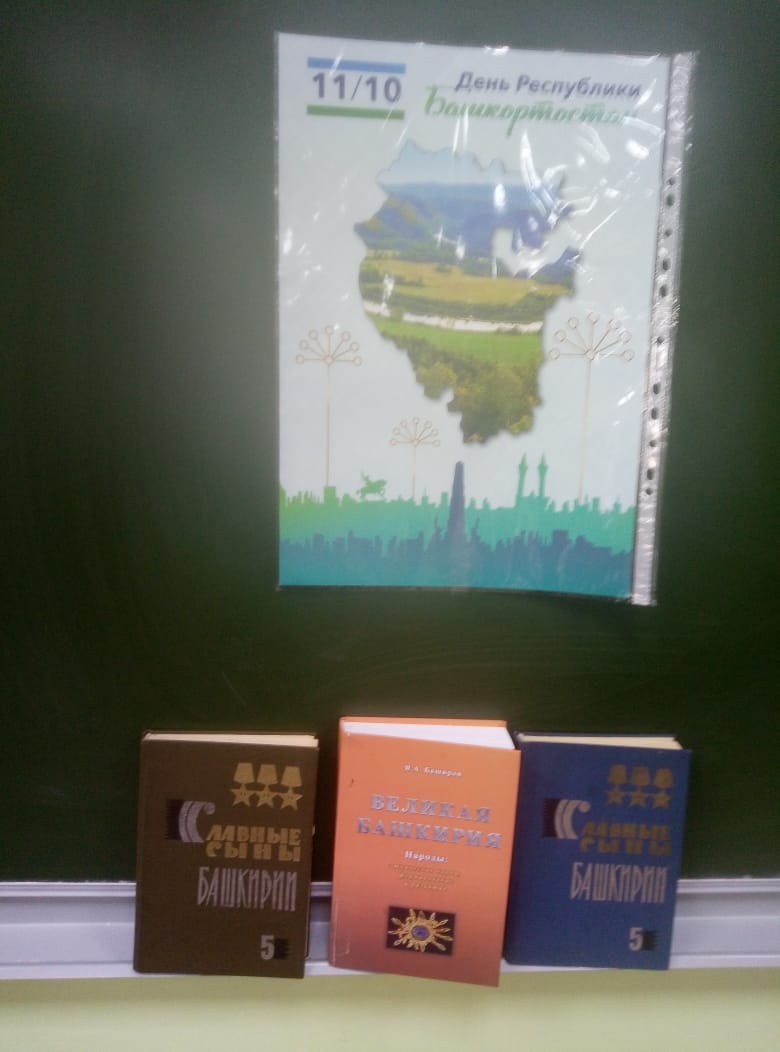 Ребята познакомились с книжной выставкой «Родина моя – моя Башкирия». Особое место заняли книги башкирских писателей и поэтов: М. Карима, З. Биишевой, С. Юлаева и др.