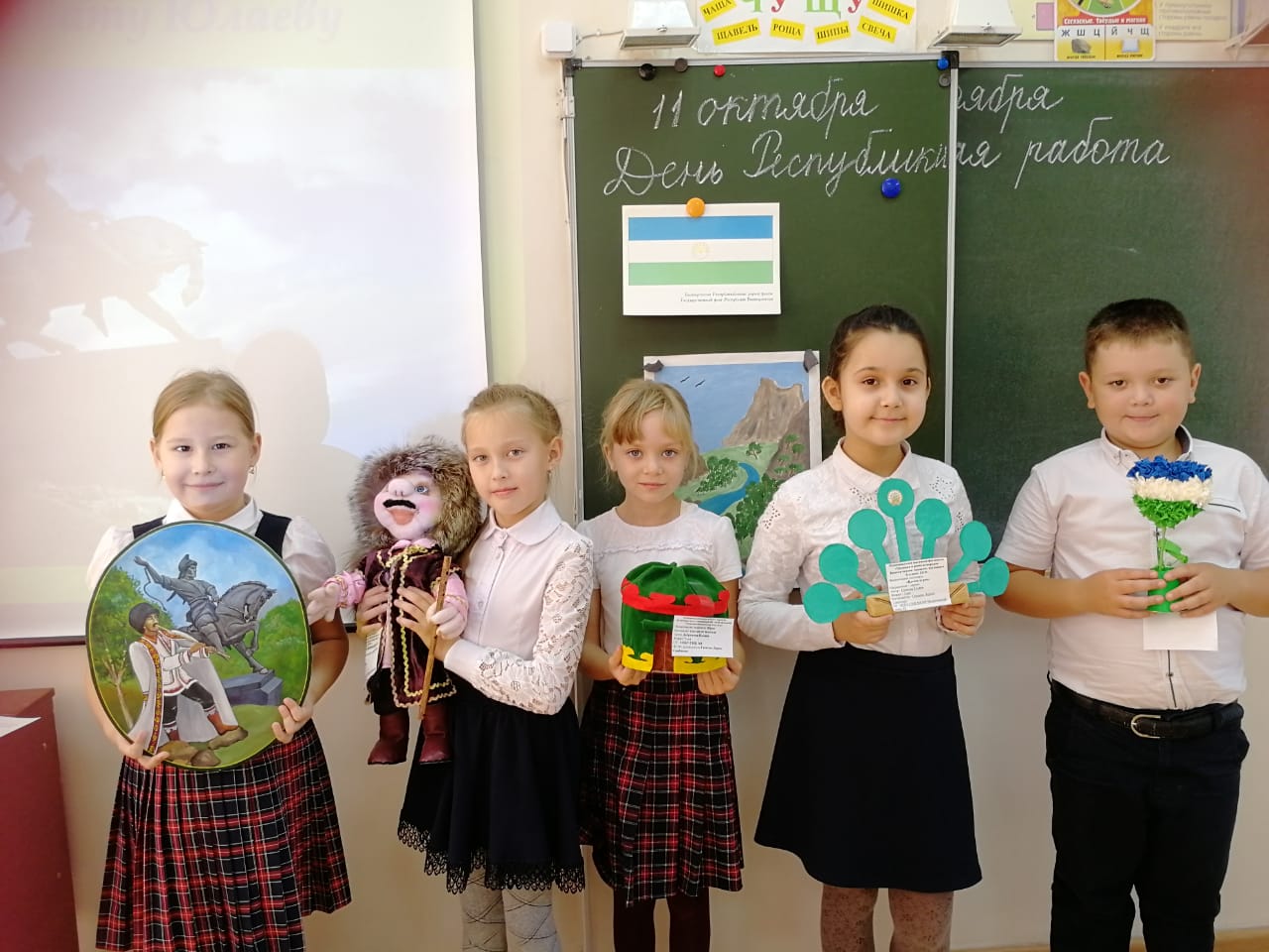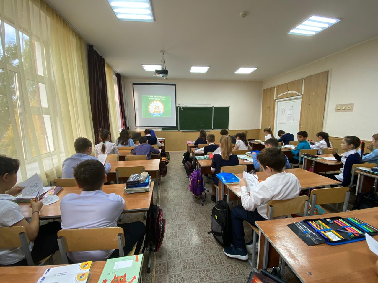 Из красочных слайдов презентаций и документальных роликов обучающиеся узнавали, что означает три цвета на флаге республики, что изображено на гербе, какими водными ресурсами, растительным и животным миром богат Башкортостан. Вели беседу о традициях и обычаях народов, о бескрайних просторах, о бесчисленных богатствах, которые нам нужно беречь и приумножать.