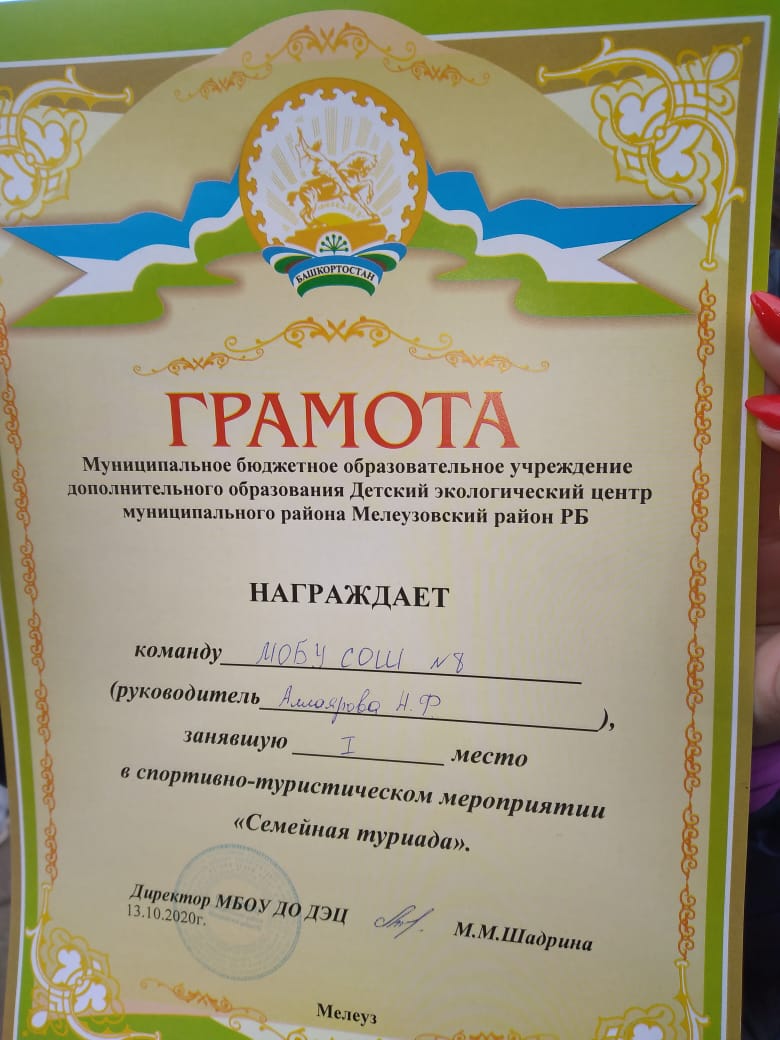 13 октября 2б класс посетил мероприятия МБОУ ДО ЦРТДиЮ им.И.Яковлева, приуроченное Дню Республики «7 чудес Башкортостана», 3д класс участвовал в «Семейной туриаде», вместе с родителями, в спортивных конкурсах с учащимися 3-х классов школ города, организованной МБОУ ДО ДЭЦ, где занял достойное первое место.