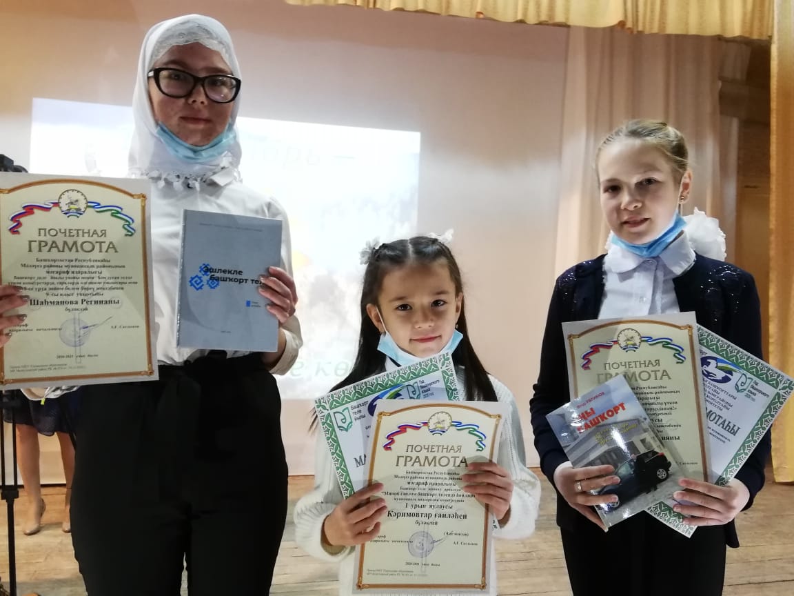 В конкурсе видеороликов “Минең ғаиләм башҡорт телендә һөйләшә” победителями стали семья Каримовых (руководитель Рахматуллина Г.Р.) Семья Музафаровых-победители в номинации “Туған телгә һөйөү” (руководитель Юмаева М.И.).
