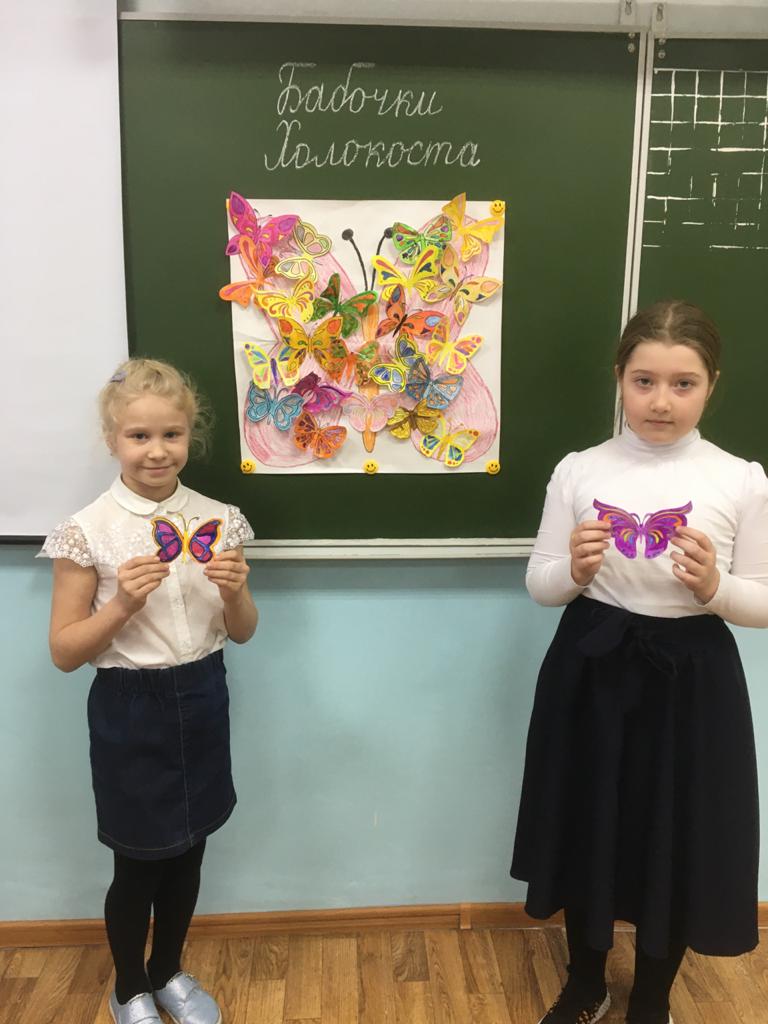 В рамках Международного дня памяти жертв Холокоста в школе с 18 – 27 января проходит акция «Бабочки памяти Холокоста», классными руководителями проводятся классные часы по обозначенной тематике, для старших классов организован просмотр документальных и художественных фильмов.