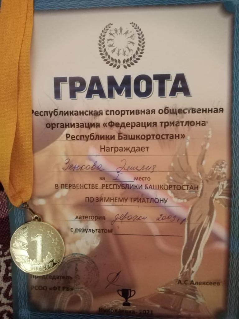 5 февраля в г. Уфе проходило Первенство Республики Башкортостан по зимнему триатлону, организованное Республиканской спортивной общественной организацией «Федерация триатлона в Республике Башкортостан». Ученица МОБУ СОШ №8 Зенкова Эмилия (5 г класс, тренер Глязинтинов Д.А.) заняла 1 место! Желаем дальнейших успехов и побед!