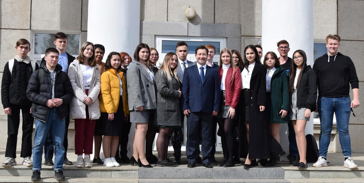 В этот день Администрация муниципального района Мелеузовский район Республики Башкортостан с Советом молодежи организовала для активистов школ города (от нашей школы приняли участие: председатель Совета учащихся МОБУ СОШ №8, кандидат в члены Совета молодежи - Циркова Дарья; кандидат в члены Совета молодежи – Васильев Егор; активист школы – Цикунова Елена) экскурсию в Администрацию, где старшеклассники смогли познакомиться с профессией работников администрации и задать интересующие молодежь вопросы.