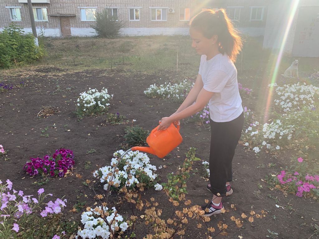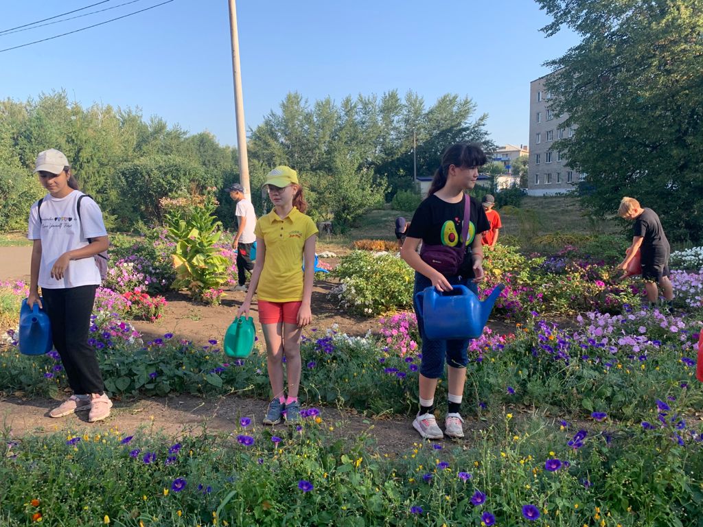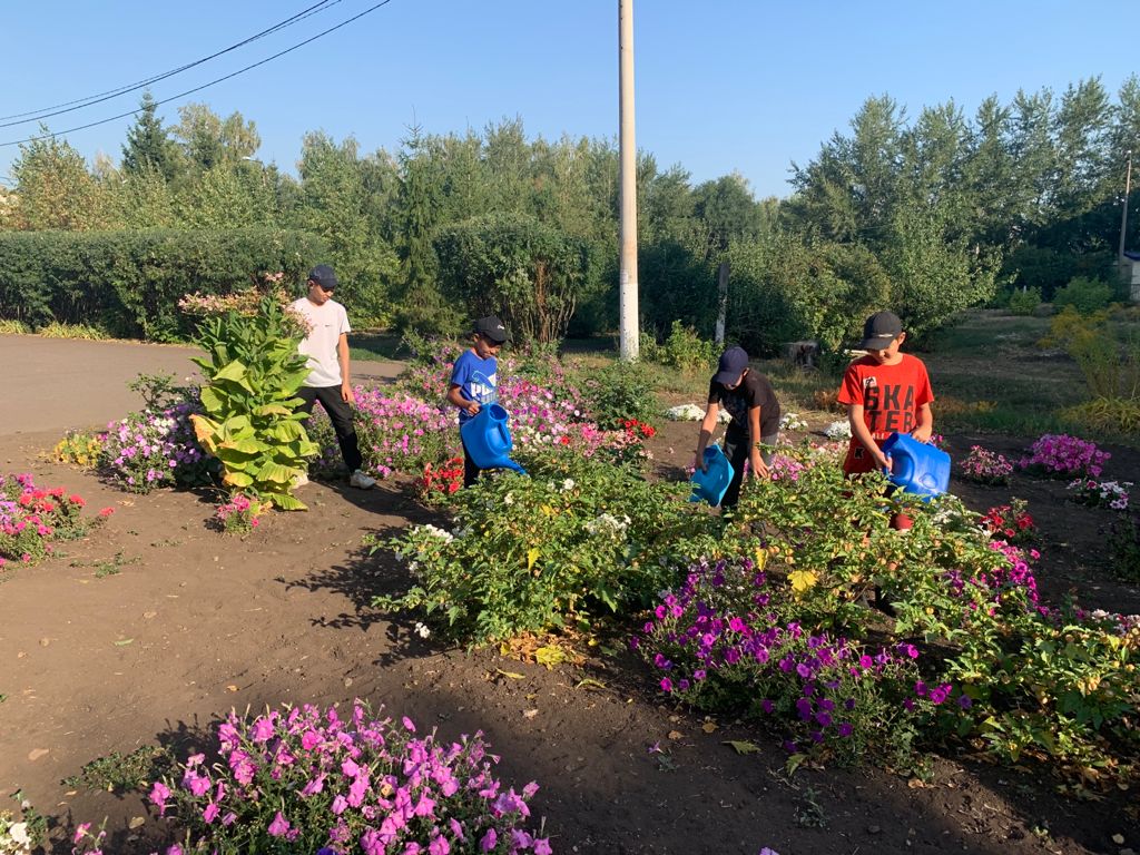 Все лето учащиеся 5-10 классов по графику ухаживали за цветами и молодыми саженцами на пришкольном участке, помогали в библиотеке.