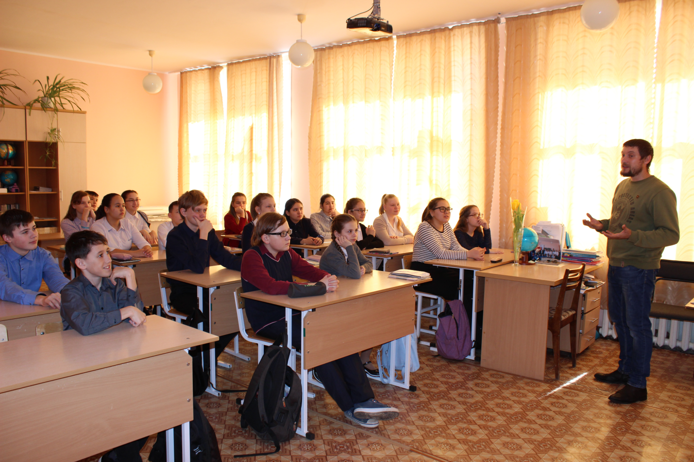 15 марта в 7 А класс МОБУ СОШ № 8 на классный час пришел необычный гость. А необычен он потому, что является знатоком многих заповедников России. Евгений Сыркин - руководитель проекта "Заповедный пояс". Человек, который объездил практически всю Россию с группой единомышленников с проектом «Заповедная Россия». с фотовыставкой уникальных природных объектов и территорий нашей необъятной страны. Увлекательный рассказ о заповедной системе России, о национальных и природных парках, о профессиях, связанных с природоохранной деятельности детей увлек на целых 2 часа, которые пролетели как 2 минуты. И еще долго не хотели расставаться.